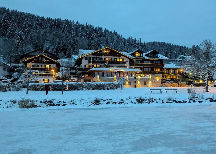 A síelési lehetőségek magukba foglalják a síiskolát és sítárolót. A Füssen városi Seehotel Hartung & Ferienappartements teljes körű szolgáltatást nyújtó fürdővel és wellnessközponttal várja a pihenni vágyó vendégeket.